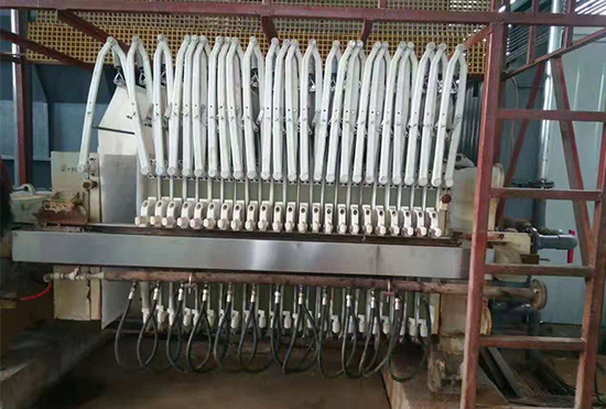 適用于粘性較大,濾餅難以自動剝 落的物料,我公司開發的濾布曲張系統可 使壓濾機在工作時能夠改變濾布的傾斜角 度,成倒V字形,同時持在濾布上的彈簧 伸縮產生抖動,使濾餅自動脫落。 曲張桿 采用增強聚丙烯材質,重量輕,耐腐蝕, 具有動作靈活,維護方便等特點。
